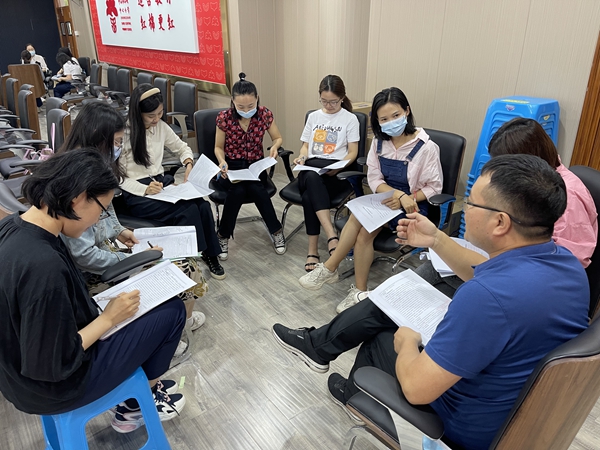活動的第二部分是分小組進行課題申報書的研磨。郭躍輝老師曾在今年的3月18日給研修班成員做了《教育科研課題選題與申報》專題講座,激發了研修班成員對課題申報的寫作訓練熱情。這次,小組成員在專家指導老師的帶領下尋找問題,消除困惑,碰撞思維。研磨活動結束后成員紛紛表示自己對課題有了新的想法,掌握了一定的撰寫技巧。
