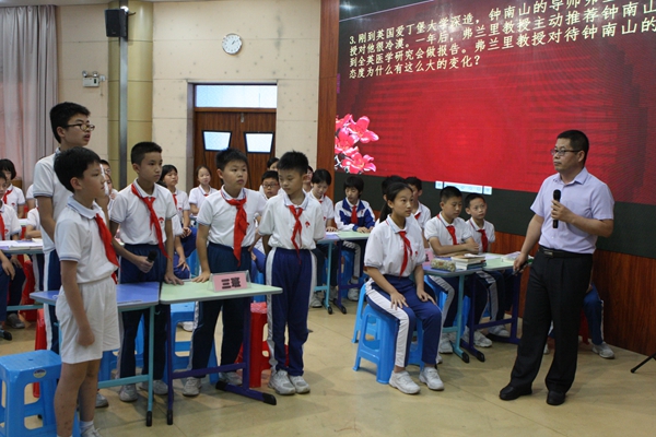 這次讀書分享活動以班級答題競賽方式進行,包括必答題,搶答題,觀眾答題和朗讀欣賞題等四個環節,主要分享了五本書,分別是《可愛的中國》《草房子》《將軍胡同》《鐘南山:生命的衛士》和《葉永烈講科學家故事 100 個》。王文儒副校長親自設計題目并主持了分享會。