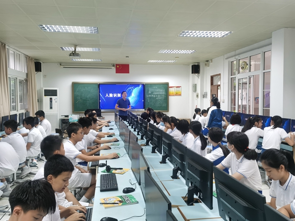 王盛老師與黎榮華老師針對六年級人工智能進行課程打磨。王盛老師執教《模擬車牌的識別》一課,通過分析車牌識別的過程,引導學生理解車牌識別的原理,進而完成程序搭建以及驗證程序可行性,更設置分層拓展任務,滿足學生差異化學習需求。黎榮華老師執教《人臉識別——刷臉識別通道》一課,先分析人臉識別原理及流程,并圍繞流程展開搭建任務。內容循序漸進,任務清晰明了。