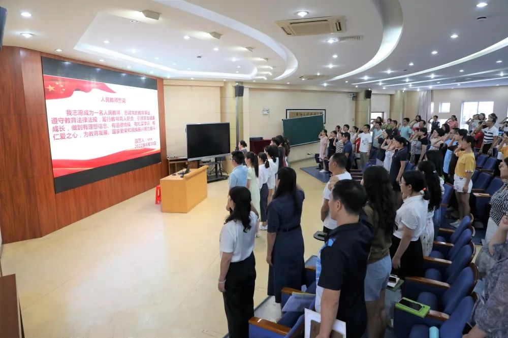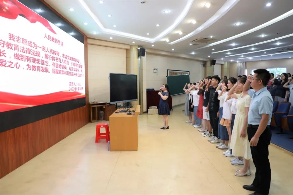 最后,梁書記帶領2022年新入職教師和臺下老教師共同重溫了人民教師誓詞,在莊重嚴肅的宣誓聲中,全體教師再次感受到教師這份職業(yè)的神圣與立德樹人的責任之重。