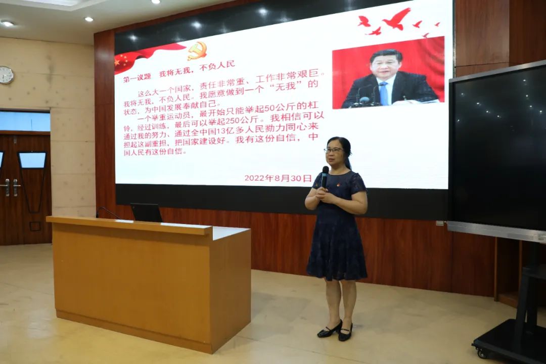 首先,梁書記帶領全體教師學習了第一議題《我將無我,不負人民》。梁書記指出,習總書記的講話讓我們明白,要提升格局,不計個人得失,團結群眾,提高能力,把工作做好。在教育中發(fā)揚無私奉獻、甘為人梯的精神,愛生如子,做人民滿意的教師。