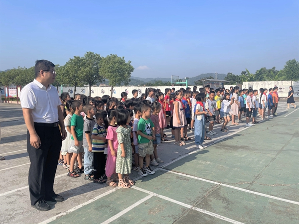 9月26日,石岐中心小學的行政和老師們早早來到龍寮小學,參加了學校的升旗儀式。在升旗儀式上,王校長向全校師生介紹了本學年的幫扶計劃,希望兩校密切配合、攜手共進、共同發展。本學期,石岐中心小學為更好地改善龍寮小學校園基礎設施,保證師生飲水衛生,在廣東金尚智能電氣有限公司的支持下,向龍寮小學捐贈了兩臺學生飲水機。同時,還向全校學生捐贈校服300套。每人一套冬裝和一套夏裝。