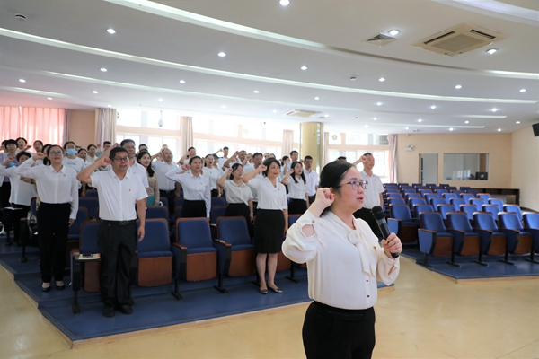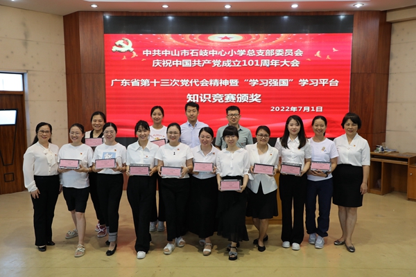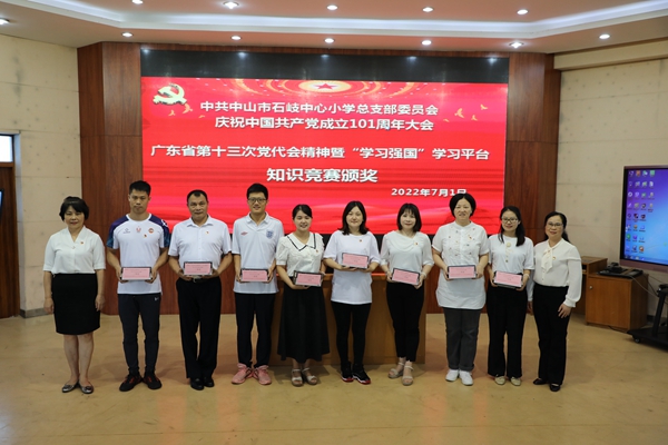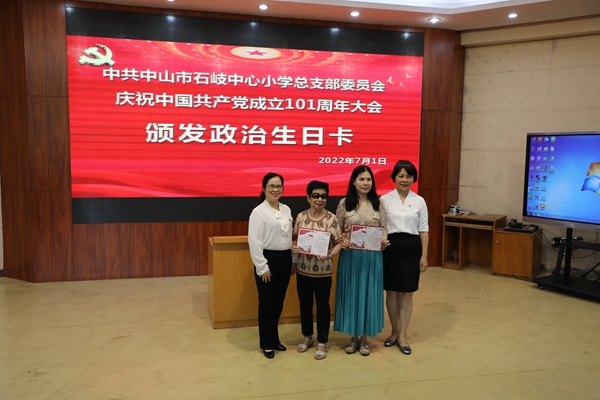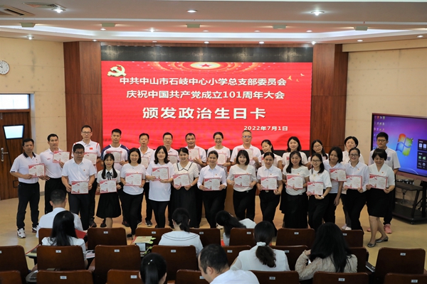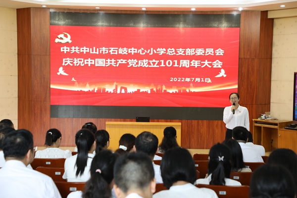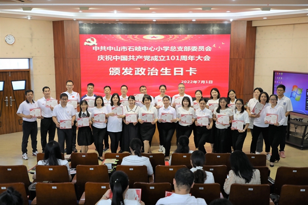2022年7月1日上午,中共中山市石岐中心小學總支部委員會全體黨員在學校三樓階梯室隆重集會,慶祝中國共產黨成立101周年。