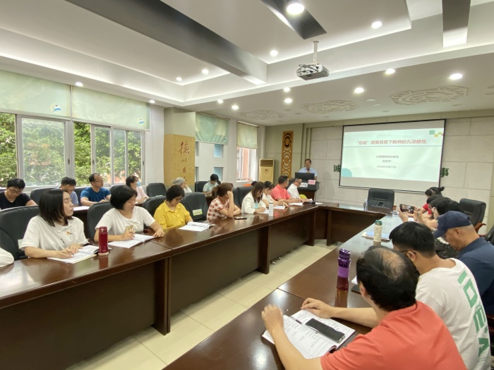 在東方小學的教師們對“雙減”有了深刻的理解之下,張主任針對教師如何提升自身的素養和能力提出了“九大修煉”:一是守住底線;二是規劃個人專業發展;三是管理好自己的情緒;四是豐富底層數據庫;五是構建系統思維;六是建立良好的人際關系;七是把課上好;八是讓自己的生活變得有趣;九是發現生命的意義。