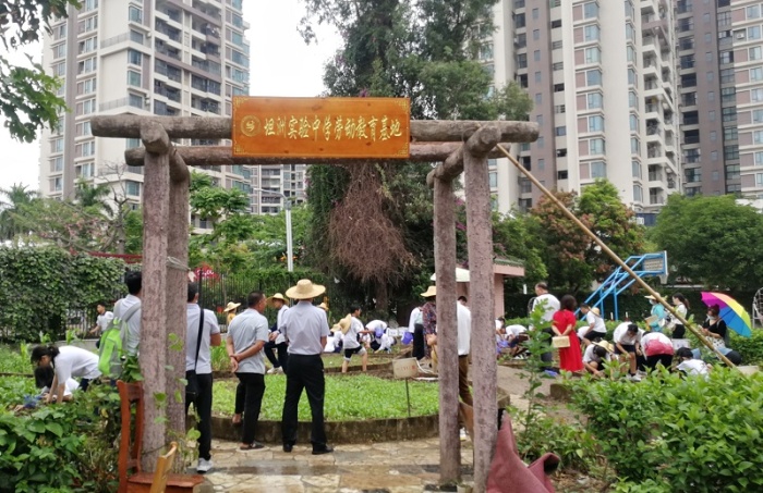 坦洲實驗中學的古娜芬老師帶來了一節精彩的《菜苗的移栽》公開課。她先帶領學生們上了10分鐘的理論課,了解菜苗移栽的操作方法和注意事項,然后讓學生們以9人為一組自由組隊,領取勞動工具,進行勞動分工。學生們興高采烈地帶著工具到學校的勞動教育基地進行種菜勞動。他們有的起苗,有的挖窩,有的種菜,有的澆水,干的不亦樂乎。