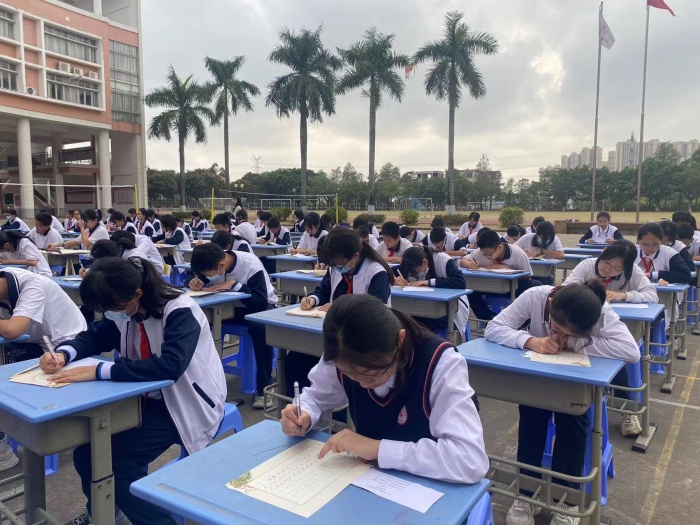 3月20日下午,中山市坦洲實驗中學(xué)第十九屆藝術(shù)節(jié)書法現(xiàn)場比賽,在學(xué)校廣場成功舉行。該校副校長楊建萍、德育處主任劉明、團(tuán)委書記黃浪靜、校辦公室副主任全亞玲、美術(shù)科組長陳東輝老師以及袁玲玲老師等有關(guān)領(lǐng)導(dǎo)和教師出席并指導(dǎo)了本次比賽,活動由該校團(tuán)委主辦,由美術(shù)組承辦。