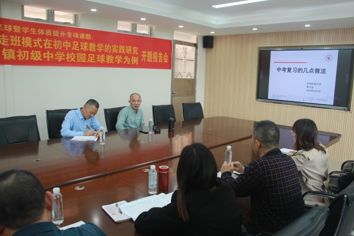 在行政會議室,朱漢業書記向考察團簡要介紹了中山市坦洲實驗中學的辦學理念、發展歷程和所取得的成績。隨后,考察團行政人員列席了坦洲實驗中學的行政會,了解該校的管理模式及日常行政事務處理流程。會后,雙方分部門進行了更加深入的探討和交流。