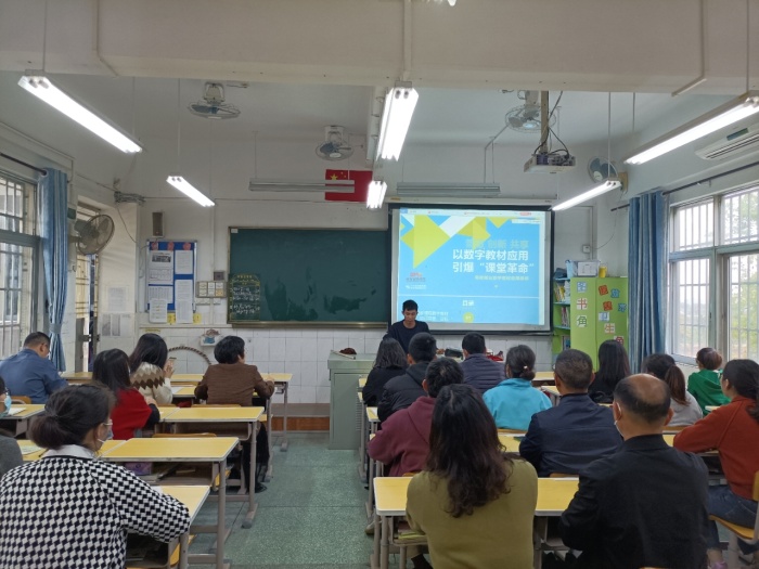 首先,黃老師向老師們?cè)敿?xì)介紹了“粵教翔云”數(shù)字教材這個(gè)平臺(tái),老師們了解了“粵教翔云”數(shù)字教材是以經(jīng)國(guó)家教育行政部門審定通過(guò)的國(guó)家課程教科書為內(nèi)容基礎(chǔ),并包含相關(guān)輔助資源、工具的,用于教學(xué)活動(dòng)的電子圖書。