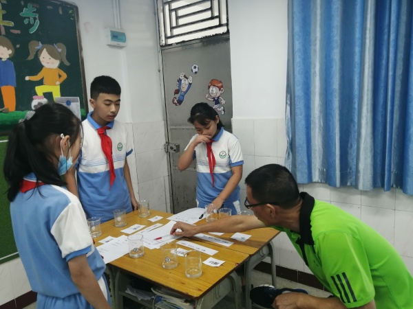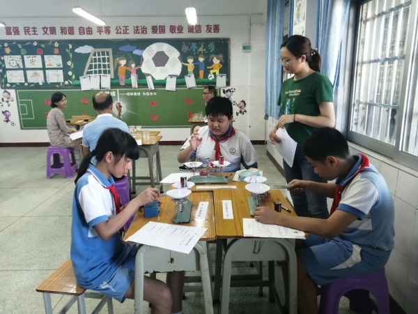 考核前,任教五年級的科學老師認真指導學生進行科學實驗,學生的興致高漲,除了在科學課上開展實驗,課后也積極參加,每個實驗每個學生操作起來都特別嫻熟。