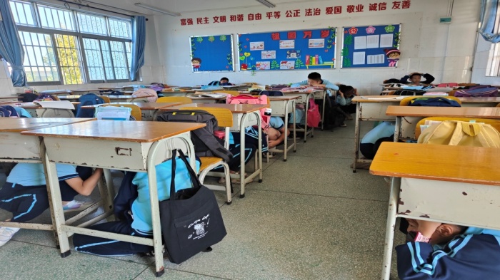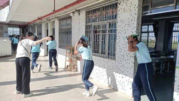 10月13日上午9:50,廣播第一次響起,聽到災難預警后,各班的班主任和科任老師迅速指導同學們護住頭部,就地避險。第二次號令響起時,同學們按照老師的指揮井然有序地貓腰護頭按指定路線快速往樓下跑去,來到寬闊的操場集合,并按班級迅速站好。隨后班主任老師快速清點本班學生人數,并及時上報學校。最后,坦洲鎮安阜小學總務主任郭秋有高度贊揚了全體師生在本次地震演練中的表現,著重強調了防震演練的重要性,也希望全體師生能夠牢記災難面前“安全第一”的原則