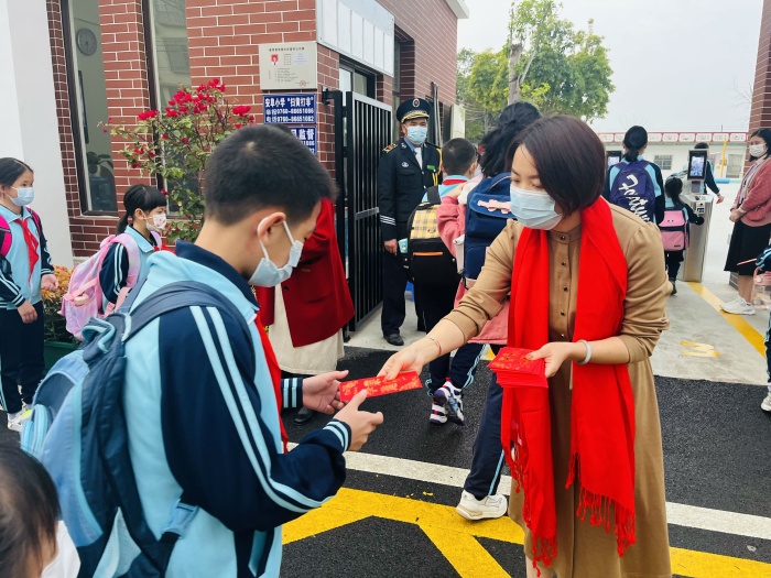 清晨,孩子們在家長的目送下,回到了溫馨的校園。而迎接他們的,有熟悉的老師們、歡樂重逢的伙伴們。一個親切的問候,溫暖的笑容,開啟了春季學期的校園生活。學校行政在校門口為同學們準備了“學業(yè)進步”開學紅包,里面有開學心愿卡和祝福卡,代表著新學期的美好祝愿和期許。而同學們也欣然領著紅包,對老師們說出一聲聲祝福!