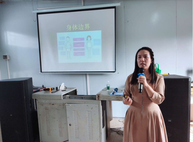 活動第一環節,由茉子老師優美動聽的歌聲《山谷回音》拉開了序幕,茉子老師唱了兩遍歌曲之后帶領同學們一起唱,活躍氣氛,大家瞬間熱情高漲。活動第二環節,是本次活動的重中之重。茉子老師通過討論分享,觀看圖片,讓同學們了解生命的誕生----人就像宇宙中的一株倒立的植物,而生殖器官就是植物綻放的美麗的花朵,花朵孕育了果實,孩子是人類的果實,接著,茉子老師帶領孩子們了解不同性別的生理特征,還特別強調女性在生理期如何保護好自己的身體、男性如何關心女性承擔責任等。通過講師的講解,孩子們不僅對身體器官的認識更正面,還更了解男女性別的區別和建立身體的邊界。主持人通過講述的案例,讓孩子們明白當別人的動作讓自己感受到不舒服的時候,要勇敢的拒絕,大聲地說:“不!”,也從法律的角度給大家普及《未成年人保護法》,讓孩子們明白雖然自己受保護,但也受約束,不能做傷害他人的動作。