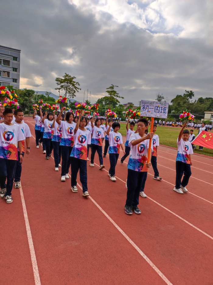 伴隨著鏗鏘有力的運動員進行曲,國旗校旗方陣、鼓樂隊、鮮花隊、彩旗隊、以及各班運動員方陣,衣著整齊,面帶笑容,精神抖擻,踏著整齊的步伐向主席臺走來。各班表演了精彩紛呈的節目,主題鮮明,形式多樣,充分展示著屬于青春的風采與活力。初二(3)班全體同學朗誦的《少年中國說》,更是將全場氣氛推向了高潮。