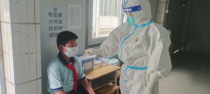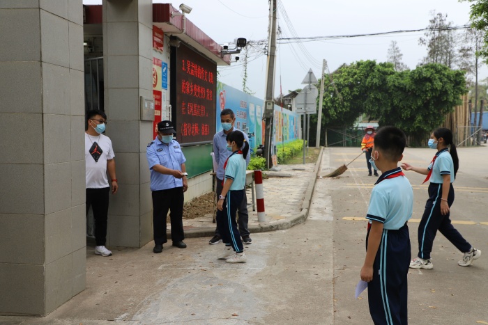 此次演練包含校園大門學生測溫、初篩陽性學生處置、密切接觸的師生的秩序管理、課室消毒、后續與家長跟蹤聯絡等環節。演練以學校接到鎮疾控中心通知,校內某班學生為新冠病毒核酸初篩陽性開始,將學校啟動新冠肺炎疫情應急預案后各部門的溝通聯系,組織隔離、消毒防護等一系列流程認真進行了演練。
