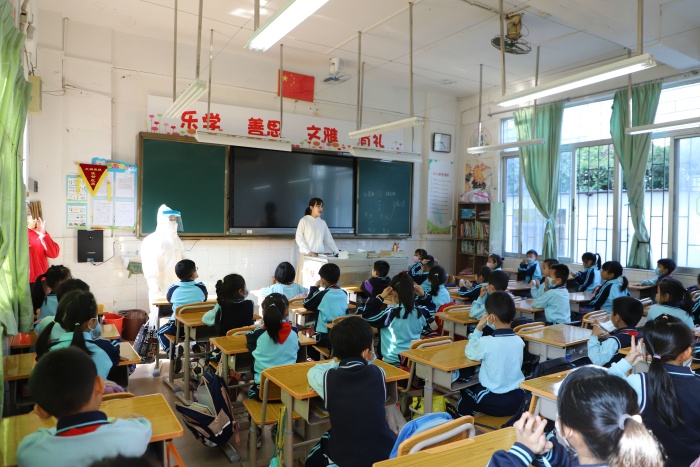 這次演練包含案例報告、初篩陽性學生處置、密切接觸的師生的秩序管理、課室消毒、后續與家長跟蹤聯絡等環節,合勝小學疫情防控應急工作小組全體人員標準示范應急處置流程,保證廣大師生的生命安全。演練中,參與的師生熟悉流程,臨戰不慌,各項處置工作有條不紊,演練工作緊張有序,演練過程嚴肅認真,各個環節配合密切,順利完成應急任務。