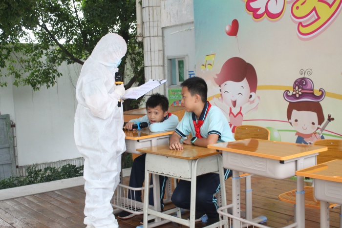 下午,參加演練的老師、學(xué)生、衛(wèi)生副校長謝遼霖、校醫(yī)周家喜及所有后勤人員全部到場,根據(jù)事先分配好的角色,認(rèn)真排練,對過程中的問題,衛(wèi)生副校長和校醫(yī)一一指導(dǎo),直至完全符合疫情防控要求。