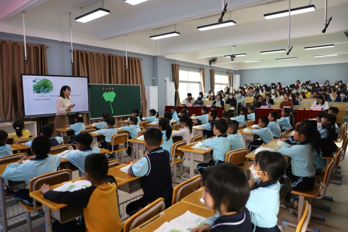 為培養(yǎng)青年教師,坦洲鎮(zhèn)教育和體育事務(wù)中心特聘請(qǐng)梁雪菊老師為指導(dǎo)顧問,并頒發(fā)證書。活動(dòng)中,同德小學(xué)李媚老師進(jìn)行一年級(jí)下冊(cè)《荷葉圓圓》課例展示。李老師親切的話語,有趣的課前熱身游戲很快吸引了孩子們,課堂上書聲瑯瑯,氣氛活躍,同學(xué)們童稚的發(fā)言,引來老師們陣陣笑聲。