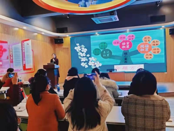 小學語文中心教研組成員、七村小學徐常艷老師則就“基于國家質量監測的小學語文試題命制與質量評價”,從“質量檢測的情況分析”“試題命制的教學導向”兩個方面展開學習分享。徐老師通過數據分析,匯報了全市語文監測的整體優勢、突出亮點;通過問題歸因,探究了改進策略和推進措施。并重點就“深度學習,深度教研”提出了獨到的見解和做法,尤其強調老師要依綱靠本,在課堂上要質量。幫孩子建構知識系統與方法系統,注重言語智能以及思維方法的訓練。