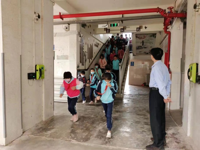 為進一步樹立“安全第一”的思想,加強學校安全工作,增強全體師生的安全防范意識和提高遇到災(zāi)害發(fā)生時積極科學自救、自護的能力,讓廣大師生更深入地了解突發(fā)事件逃生常識,從容應(yīng)對火災(zāi)事件的發(fā)生,最大限度的保護廣大師生的人身安全。2021年11月15日上午8:00-8:20,坦洲鎮(zhèn)聯(lián)一小學開展了模擬火災(zāi)突發(fā)事件逃生疏散演練活動。