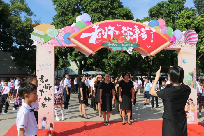 最后,在學生們熱烈的歡迎掌聲中教師們踏上了紅毯接受學生們的獻花。一朵朵嬌艷的鮮花,一聲聲樸實的祝福回蕩在校園的每一個角落,久久沒有散去,校園里到處洋溢著溫暖與感動。
