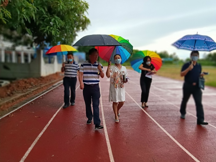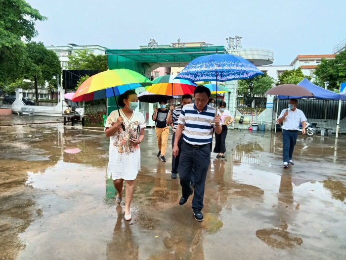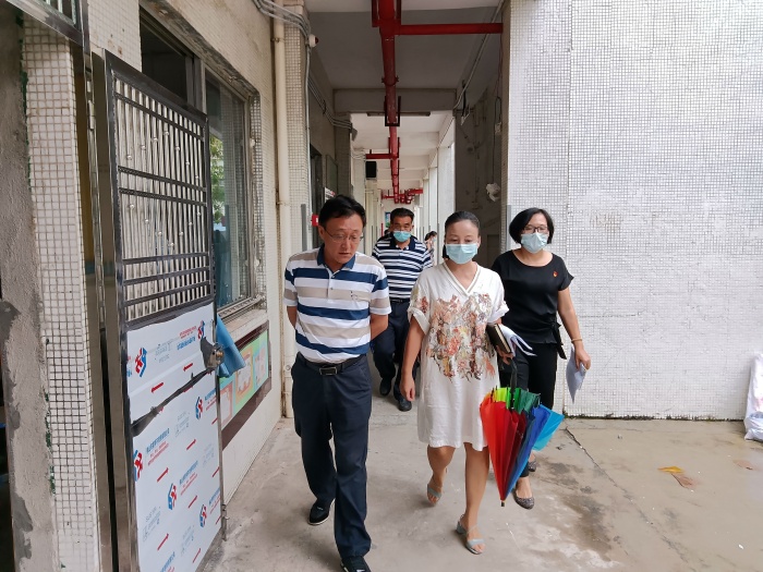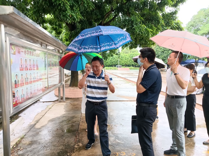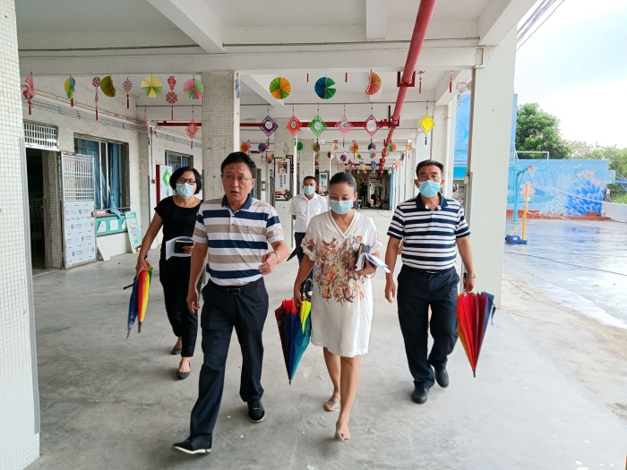8月27日,中山市教育和體育局工委副書記廖誠等一行人來到坦洲鎮聯一小學開展開學前防疫調研工作。坦洲教育和體育事務中心副主任黃華福、聯一小學校長潘虹率等陪同檢查。