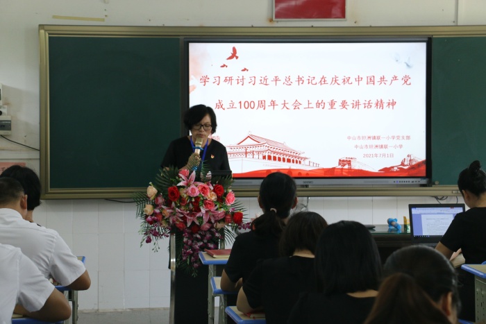 “何其有幸,生于華夏,見(jiàn)證百年”,這是老師們的心聲。當(dāng)天下午,全體教職員工集中在學(xué)校多媒體室召開(kāi)討論會(huì),交流心得。黨支部委員白雪梅同志談到:“將不忘初心、牢記使命,腳踏實(shí)地,為聯(lián)一小學(xué)的發(fā)展、為坦洲鎮(zhèn)教育事業(yè)的發(fā)展,為實(shí)現(xiàn)第二個(gè)百年奮斗目標(biāo),為實(shí)現(xiàn)中華民族偉大復(fù)興的中國(guó)夢(mèng)而奮斗!”。今天剛成為預(yù)備黨員的蘇影霞同志熱淚盈眶,她說(shuō)道,今天這個(gè)特殊的日子,她面對(duì)黨旗宣誓,成為9500多萬(wàn)人中的一員,內(nèi)心無(wú)比激動(dòng)。在以后的工作中,將堅(jiān)定理想信念,踐行黨的宗旨,努力為黨和人民爭(zhēng)取更大光榮!群眾教師麥嘉敏說(shuō):“我們要牢記黨的宗旨,堅(jiān)定理想信仰,加強(qiáng)黨性修養(yǎng),培養(yǎng)高尚師德。在我們平凡的工作中,任勞任怨,勤奮付出,以無(wú)私之心干工作,以真誠(chéng)之心對(duì)學(xué)生,以友善之心對(duì)他人,默默地為黨的事業(yè)貢獻(xiàn)自己的一份力量。”最后,學(xué)校黨支部書記潘虹總結(jié),她號(hào)召老師們暑假認(rèn)真閱讀學(xué)校為每一位教師購(gòu)買的四本黨史學(xué)習(xí)教育書籍的其中一本——《中國(guó)共產(chǎn)黨簡(jiǎn)史》。黨員教師再多讀一本《毛澤東 鄧小平 江澤民 胡錦濤關(guān)于中國(guó)共產(chǎn)黨歷史論述摘編》,并撰寫心得。通過(guò)學(xué)史明理,學(xué)史增信,學(xué)史崇德,學(xué)史力行,在教育教學(xué)中不忘初心,服務(wù)人民,辦人民滿意的教育。