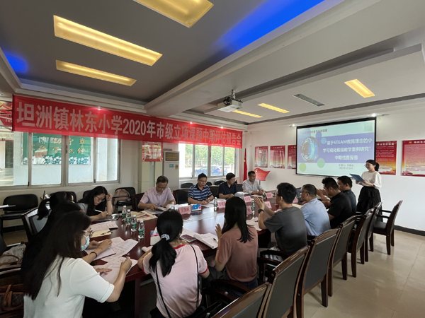 4月26日下午,由坦洲鎮林東小學張超金老師主持的中山市2020年教育科研課題“基于STEAM教育理念的小學可視化編程教學案例研究”中期評估報告會在坦洲鎮林東小學舉行,報告會邀請了教育部國培計劃專家、廣東省特級教師、中山市名教師、中山市教育教學研究室教研員陳明宏老師,中山市信息技術學科帶頭人、廣東省教育信息化專家庫成員、中山市教育技術中心智慧校園技術總監 陳志豪部長,廣東省黃偉祥名師工作室成員、中山市骨干教師、小欖鎮西區小學吳國棟主任,坦洲鎮教育與體育事務中心梁北橋老師四位專家蒞臨指導,林東小學吳維雄校長、蘇煥副校長及課題組全體成員參加本次報告會。