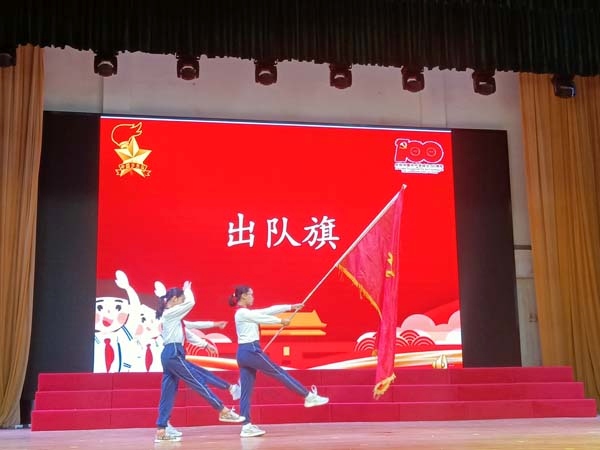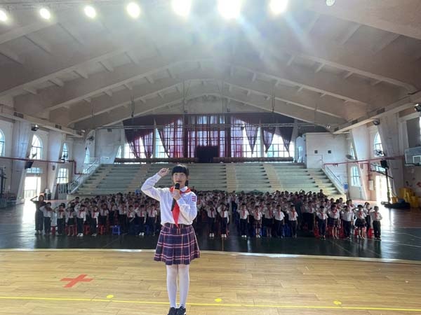 本次入隊儀式由學校大隊委楊可瀅和邵越兩位優秀少先隊員主持。隨著嘹亮的出隊旗曲響起,旗手和護旗手們邁著整齊、鏗鏘有力的步伐出場。新老隊員們精神飽滿,歌聲洪亮,唱出了心中的自豪和對少先隊組織的無比熱愛。