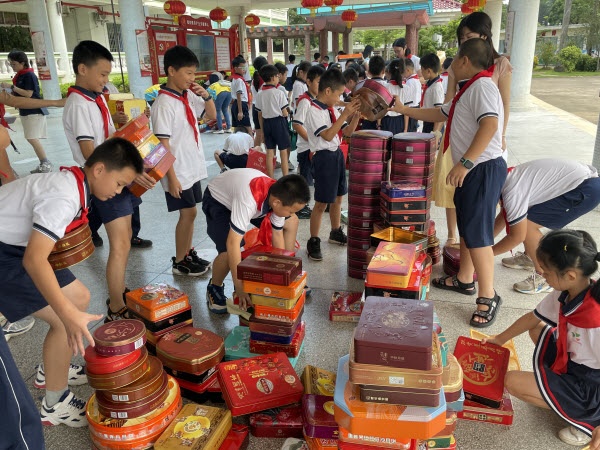 全校師生積極響應學校的倡議,并參與了“綠色中秋餅盒變寶盒,回收換回饋——月餅盒回收”中隊活動。少先隊員們紛紛從家里帶回來了各種精美的月餅盒,在各中隊家長志愿者的協助下,齊心協力對月餅盒進行了整理和分類,全校共收集到月餅紙盒328個,月餅鐵盒650個,一共978個。