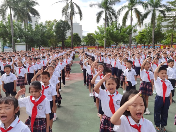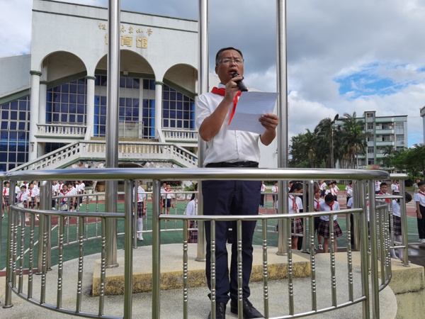 莊嚴的升旗儀式結束之后,吳維雄校長做了國旗下講話——開學第一課《永遠跟黨走》。在講話中,吳校長寄語全體師生要以良好的精神狀態、飽滿的學習熱情、積極投身到新學年的學習和工作中去,用嶄新的面貌和成績去繼續創造林東小學的美好未來!吳校長特別強調,新學期新起點,作為一名小學生,我們要感黨恩,聽黨話,永遠跟黨走。作為一名優秀的林東學子,我們要時刻嚴格要求自己,好好學習,長大報效祖國。要讓胸前鮮艷的紅領巾時刻提醒自己:“請黨放心,強國有我”。