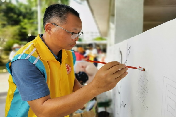 活動(dòng)在4點(diǎn)準(zhǔn)時(shí)開(kāi)始,志愿者們分工明確,有條不紊地進(jìn)行作畫(huà):有的負(fù)責(zé)構(gòu)圖,用毛筆在墻體上勾勒出清晰的輪廓;有的負(fù)責(zé)調(diào)色,紅的、綠的、黃的,藍(lán)的顏料在靈巧的雙手間生成七彩斑斕的,符合畫(huà)面的顏色;有的負(fù)責(zé)涂色,拿起各式畫(huà)筆在墻體上細(xì)致涂刷。經(jīng)過(guò)兩小時(shí)的精雕細(xì)琢,讓原本素顏的墻面開(kāi)始生動(dòng)、鮮活起來(lái),為城市環(huán)境增添了一道亮麗的畫(huà)卷。