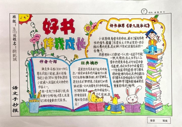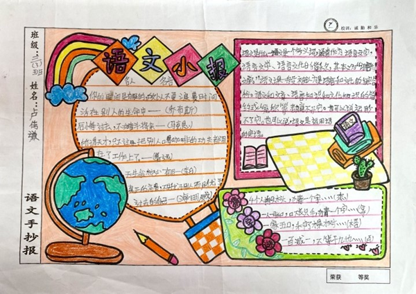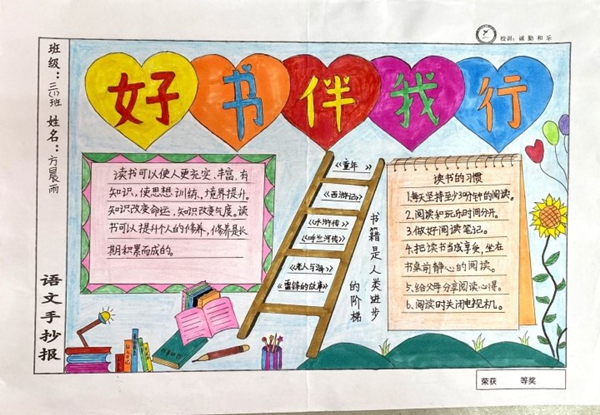 總而言之,此次本次“創(chuàng)意貼畫·古詩伴我行”暨“讀書伴我行”手抄報(bào)比賽,不僅為學(xué)生提供一個(gè)推薦喜歡書籍、閱讀經(jīng)典古詩的平臺(tái),也讓豐富了學(xué)生的知識(shí),開闊他們的視野,活躍他們的思維,陶冶他們的情操,鍛煉他們的繪畫能力,真正使他們體驗(yàn)到,分享的快樂,總而言之,本次比賽意義非凡,學(xué)生們都在此過程中收獲頗多!