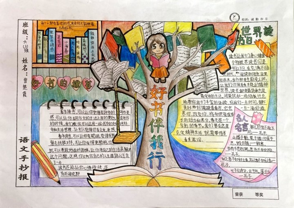 本次比賽,各班學(xué)生認(rèn)真準(zhǔn)備,積極參與。在班主任及指導(dǎo)老師的精心指導(dǎo)下,一、二年級(jí)學(xué)生以“創(chuàng)意貼畫”的形式展現(xiàn)“古詩”的內(nèi)容,體現(xiàn)學(xué)生對(duì)古詩的理解。三至六年級(jí)同學(xué)們廣泛搜集讀書資料,精心設(shè)計(jì)手抄報(bào)版面,創(chuàng)作出了一幅幅內(nèi)容豐富、形式多樣的讀書手抄報(bào)。