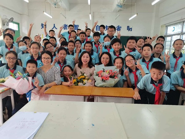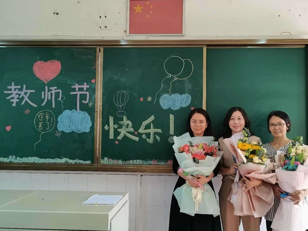 當你走在各年級樓層,你會透過窗戶看見各班級早已準備好慶祝活動:孩子們在黑班上畫好了精美的圖案,彩色粉筆大大寫著“教師節快樂”。鮮花、自己做的賀卡早已擺放在講臺,孩子們像藏著什么秘密似的等候著老師的到來。一節由學生自己策劃慶祝教師節的主題班會正準備上演。主題班會充滿濃厚的感恩氣氛,師生情在心與心之間的交流中輕輕流露。校園里洋溢著喜慶,課堂充滿了溫馨,老師們感受到節日的快樂,享受到了幸福。