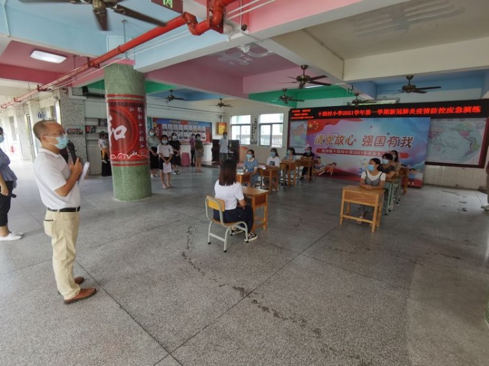 演練活動由十四村小學負責衛生工作的李秋嬋主席主持。當日的演練包含學生錯峰入校、學生入班晨午檢及課中突發事件的應急處置等三個環節。