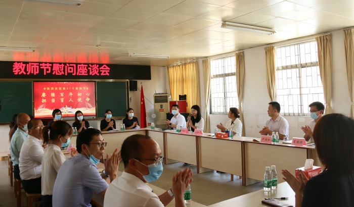 第37個教師節,如約而至。十年樹木、百年樹人,教師的使命偉大而光榮。2021年9月10日,中山市委組織部常務副部長、一級調研員左海燕、中山市委組織部組織三科科長盧俊松、坦洲鎮黨委副書記羅慧玲、鎮黨委委員夏冠聰以及鎮黨建辦、宣傳辦、教育和體育事務中心等領導走進學校,慰問教師。向辛勤耕耘在教育一線的老師們送去了節日的祝福與真切的關懷。參加本次慰問座談會的還有坦洲鎮第三初級中學、十四村小學校級領導和部分教師代表。