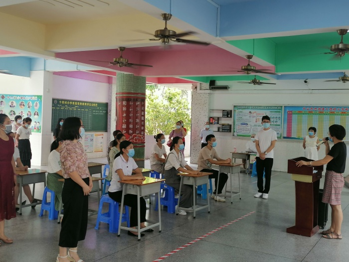 隨著2020年秋季新學期臨近,學校即將迎來師生回歸。為全面做好疫情防控工作,進一步提高疫情防范和處置能力,熟練掌握學校疫情防控工作流程。2020年8月31日,坦洲鎮十四村小學在校內舉行返校“新冠肺炎防控”重點環節疫情防控演練。演練活動由十四村小學負責衛生工作的李秋嬋主席主持會議。當日的演練包含學生錯時入校、學生入班晨午檢及課中突發事件的應急處置等三個環節。
