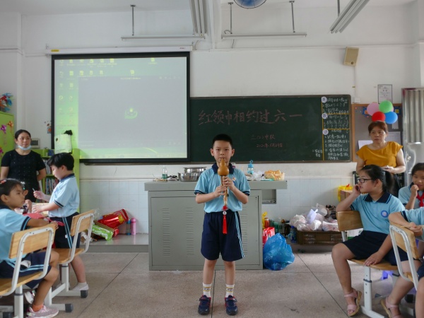 接下來,每班開展了花式多樣,生動有趣的 六一慶祝活動。看!隊(duì)員們臉上燦爛的笑容;聽!隊(duì)員們悅耳的歌聲。最受孩子們歡迎的是美食分享會。看那一張張小嘴一邊吃著同學(xué)間分享的美食,還一邊歡樂的與老師、同學(xué)們交流玩耍,畫面多么的愜意啊!面對這樣美好的畫面,攝影師老師趕緊按動快門,一張張的照片留下了這個夏天、這個六一最美好的記憶。