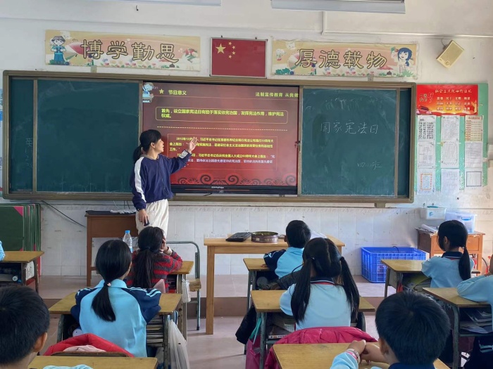 在12月4日第8個國家憲法日即將到來之際,坦洲鎮新合小學開展了國家憲法日宣傳教育系列活動,向師生宣傳憲法知識、弘揚憲法精神,將“憲法至上”的信念根植于青少年心中。