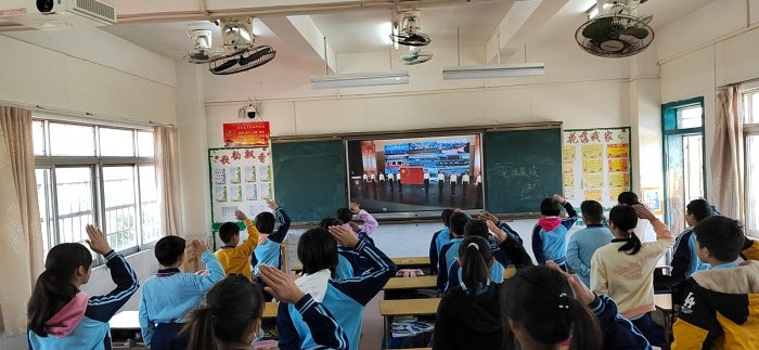 最后,以觀看“憲法晨讀”網絡直播為延伸,12月3日,學校全體師生通過收看視頻網絡直播,同步參與觀看,加入了“憲法晨讀”的行列。全體師生精神飽滿,情緒激昂,大聲跟隨誦讀,學習憲法的基本原則和基本知識,用心體會憲法的莊嚴與神圣,增強憲法意識,弘揚憲法精神,懂得愛國守法。