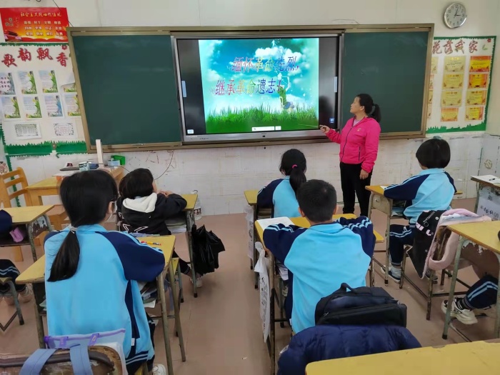 4月2日,各班有序開展緬懷先烈的主題班會。學生們在班主任的教育下學習清明節的風俗活動,并倡導文明祭掃,接著回顧邱少云、董存瑞、劉胡蘭等先人偉大的事跡,學生們追隨先人的足跡細細品悟他們身上舍己為人、無私奉獻的精神,最后學生們鄭重宣誓:緬懷革命先烈,繼承革命遺志。