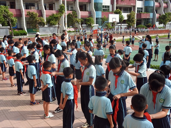 活動前,大隊輔導(dǎo)員謝偉老師為一年級小朋友講解了少先隊的基礎(chǔ)知識,讓他們初步了解了少先隊的隊史、少先隊的組織、認(rèn)識了少先隊的隊旗、隊徽等標(biāo)志。在謝偉老師的指導(dǎo)下學(xué)會了“系紅領(lǐng)巾”、“唱隊歌”,掌握了“呼號及誓言”的內(nèi)容及要求等。