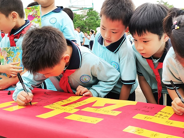 接著,愿意接受本次“21天健康閱讀行動(dòng)”挑戰(zhàn)的學(xué)生上臺(tái)簽名,在鮮紅的挑戰(zhàn)書上寫下自己的名字,正式開(kāi)啟閱讀挑戰(zhàn)。最后,同學(xué)們積極踴躍地拿出自己珍藏的書籍,參加學(xué)校的漂書活動(dòng),彼此分享閱讀的快樂(lè)。知識(shí)因傳播而美麗!圖書漂流是一種贈(zèng)予,一種分享。圖書漂流,漂流的不僅是知識(shí)和智慧,更是漂流了文明和美麗,一種愛(ài)讀書、珍惜書的好習(xí)慣已在永一小學(xué)悄悄形成。