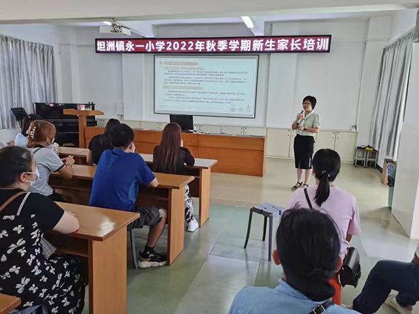 披著金秋的暖陽,踏著希望的步伐,我們向未來走去。為了讓一年級新生及家長對學(xué)校的情況有一個全面的了解,認(rèn)同學(xué)校的辦學(xué)理念,開學(xué)后能積極配合學(xué)校開展各項工作。同時讓學(xué)生和家長對學(xué)校的常規(guī)要求有一個具體的認(rèn)識,開學(xué)后能配合學(xué)校老師做好各項工作。乘著金秋九月的東風(fēng),讓家長積極地投入到學(xué)生教育當(dāng)中來,增進家校溝通,8月28日上午,中山市坦洲鎮(zhèn)永一小學(xué)特開展“家校攜手 揚帆啟航”一年級新生及新生家長培訓(xùn)活動。