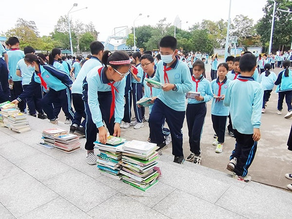 隨后,進行“漂兩本,讀百本”圖書漂流活動。活動上,同學們積極踴躍地拿出自己珍藏的書籍,把它們“漂流”到自己的班級,與其他同學分享閱讀的快樂。圖書漂流是一種贈予,一種分享。圖書漂流,漂流的不僅是知識和智慧,更是漂流了文明和美麗,一種愛讀書、珍惜書、分享書的好習慣已在永一小學悄悄形成。