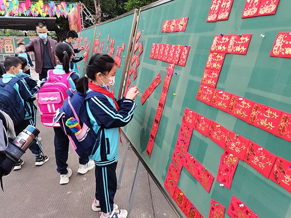 早上,永一小學德育處特別為全體同學舉行了儀式感滿滿的“開學紅包”抽取儀式:同學們一踏進永一小學校園,即可到“紅包墻”上挑選一個紅包,并到舞臺處兌換小禮品。手拿紅包和禮物,每位學生的臉上都洋溢著興奮和幸福的笑容。上午8:20,開學典禮上,永一小學的全體師生們集中到操場,向國旗敬禮、高唱國歌。在雄壯的國歌聲中,師生們正式迎來了充滿喜悅與挑戰的新學期。升旗儀式之后,學生代表羅梓萱同學圍繞“新學期,新起點,新征程”這一主題進行了本學期的第一次國旗下講話。