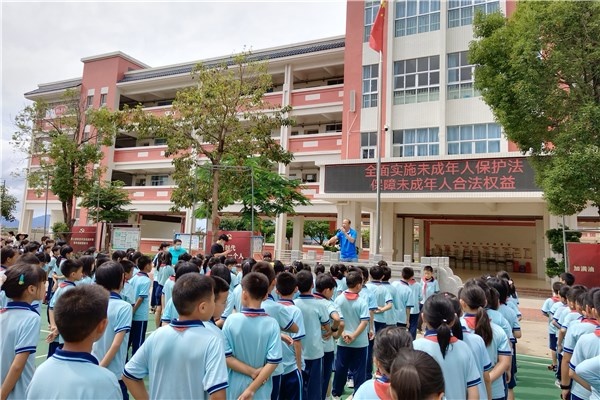國旗下講話時,二(3)班的溫朗榆同學(xué)用孩子的眼光表示,《未成年人保護法》就像一把撐開的傘,未成年人受到法律的保護之后,天空將是一片蔚藍與光明,無懼風(fēng)雨,不怕黑暗。裕洲小學(xué)工會主席陸其輝也告誡同學(xué)們要增強法制觀念,提高法律的意識,拒絕校園欺凌,在生活中做一個知法、懂法、守法的小公民。