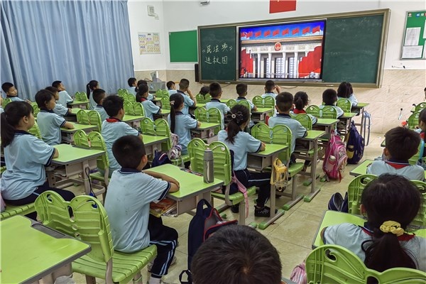 除主題班會外,法制教育宣傳周的活動還包括國旗下講話、線上宣傳、小手拉大手等,主要宣傳了《憲法》《未成年人保護法》及《民法典》等與孩子息息相關(guān)的法律法規(guī)。