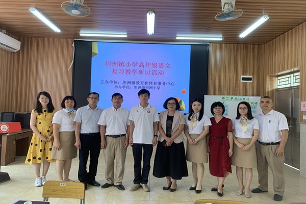 在“雙減”政策下,為確保學生能在有限的學習時間中鞏固、整理本學期所學知識,進一步提高期末復習的針對性、實效性,切實做好復習工作,根據《坦洲鎮小學高素質專業化創新型教師隊伍建設系列活動方案》,6月10日上午,坦洲鎮教育和體育事務中心在裕洲小學舉辦坦洲鎮小學高年級語文復習教學研討活動。坦洲鎮教體文旅局副局長楊興、坦洲鎮教育和體育事務中心副主任陳麗娥、教研員梁北橋老師,坦洲鎮小學語文中心教研組戴水連老師、余美卿老師及兄弟學校高年級組的老師參與了此次活動。