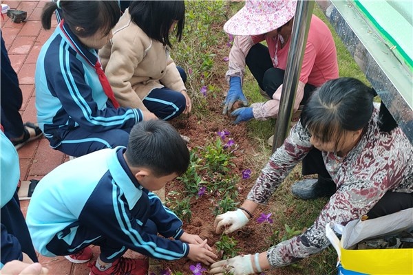 聽!裕洲小學(xué)少先隊大隊長正在國旗下號召全體隊員用實際行動來迎接植樹節(jié),為家鄉(xiāng)的綠化添磚加瓦,為地球爺爺披上美麗的綠衣呢!本次植樹節(jié)活動形式豐富多樣。有的隊員來到勞動基地,種下棵棵生機。小手因為用力挖坑而通紅?不怕。鞋子上沾滿了沙子和泥巴?不怕。累得額頭上掛著滴滴黃豆般大小的汗珠?更不怕!有的隊員三五成群為學(xué)校的草坪清除雜草,在大汗淋漓的勞動中收獲歡笑。有的隊員在家人的陪同下,房前屋后忙碌個不停,當(dāng)看到一棵棵小果苗、小花苗,在春風(fēng)的逗弄下笑得枝葉亂顫時,孩子的臉因高興而變得紅潤潤,美滋滋的。是啊,還有什么顏色比綠色更讓人欣喜,更讓人充滿希望呢?